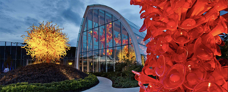 Dale Chihuly adopted this idea in the Chandelier Series. Through these new works, Chihuly has redefined the way sculpture functions in space. Chihuly once told me that the idea for these chandeliers came while in Spain at a small, old café. This restaurant had a chandelier hung right at eye level, not above as they traditionally are. What intrigued him was how a different hanging point could create such a personal interaction. It excited him so much that he decided to create hanging sculpture that embodied this concept for his Seattle Art Museum exhibition in 1992.